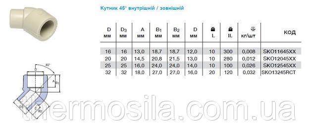 Кутник (коліно) 45° EKOPLASTIK, призначений для з’єднання трубопроводів, з одночасною зміною напрямку трубопровода під кутом 45 градусів. Повна молекулярна сумісність з трубами PP-R та PP-RCT. Чудова стійкість до високих температур та тиску. Може працювати на всьому діапазоні робочих температур і тиску (залежно від типу труби). Має компактні розміри. Ідеально підходить для важкодоступних місць. Використовується з пластиковими трубами WAVIN Ekoplastik усіх типів